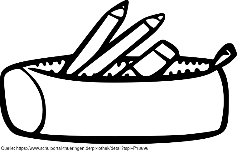 Die Zeichnung (s/w) zeigt eine Federtasche bzw. Federmappe. Das Bild ist unter CC0 lizenziert und kann somit frei verwendet werden. Es ist neben weiteren Bildern auch hier zu finden: https://cocomaterial.com