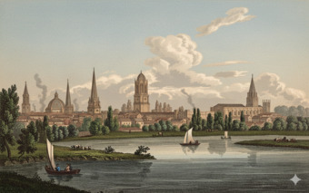Die Abbildung zeigt einen Blick auf Oxford in einer historischen Ansicht. Das Bild stammt aus Band 1 von „Meyer's Universum oder Abbildung und Beschreibung des Sehenswerthesten und Merkwürdigsten der Natur und Kunst auf der ganzen Erde“, erschienen 1833. Das Digitalisat ist bei der Universitäts- und Landesbibliothek Düsseldorf unter https://nbn-resolving.org/urn:nbn:de:hbz:061:1-621229 abrufbar. Das Gesamtwerk wurde unter Public Domain Mark 1.0 Universell lizenziert, ist somit gemeinfrei und kann frei verwendet werden. Diese Bildvariante wurde mittels KI (Gemini) nachbearbeitet und coloriert.