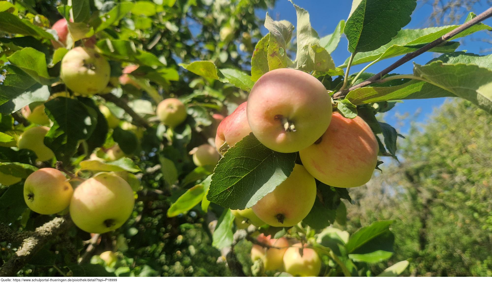 Das Bild zeigt Äpfel am Zweig auf dem ApfelGut Erfurt. Es gelten die Nutzungsbedingungen der Mediothek und Pixiothek.