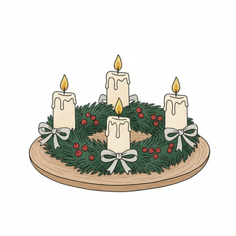 Das Bild zeigt einen gezeichneten Adventskranz. Das Bild wurde mittels einer KI (Gemini) erstellt und ist unter CC0 lizenziert. Weitere Bilder aus Herrn Emrich-Försters Bild-Archiv findet man hier: https://pix.foerster.rocks/