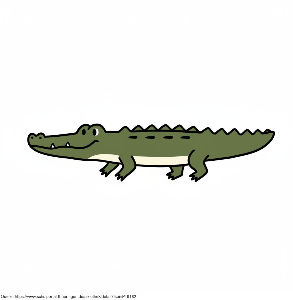 Das Bild zeigt einen gezeichneten Alligator. Das Bild wurde mittels einer KI (Gemini) erstellt und ist unter CC0 lizenziert. Weitere Bilder aus Herrn Emrich-Försters Bild-Archiv findet man hier: https://pix.foerster.rocks/