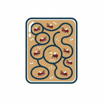 Das Bild zeigt eine gezeichnete Armeisenfarm. Das Bild wurde mittels einer KI (Gemini) erstellt und ist unter CC0 lizenziert. Weitere Bilder aus Herrn Emrich-Försters Bild-Archiv findet man hier: https://pix.foerster.rocks/