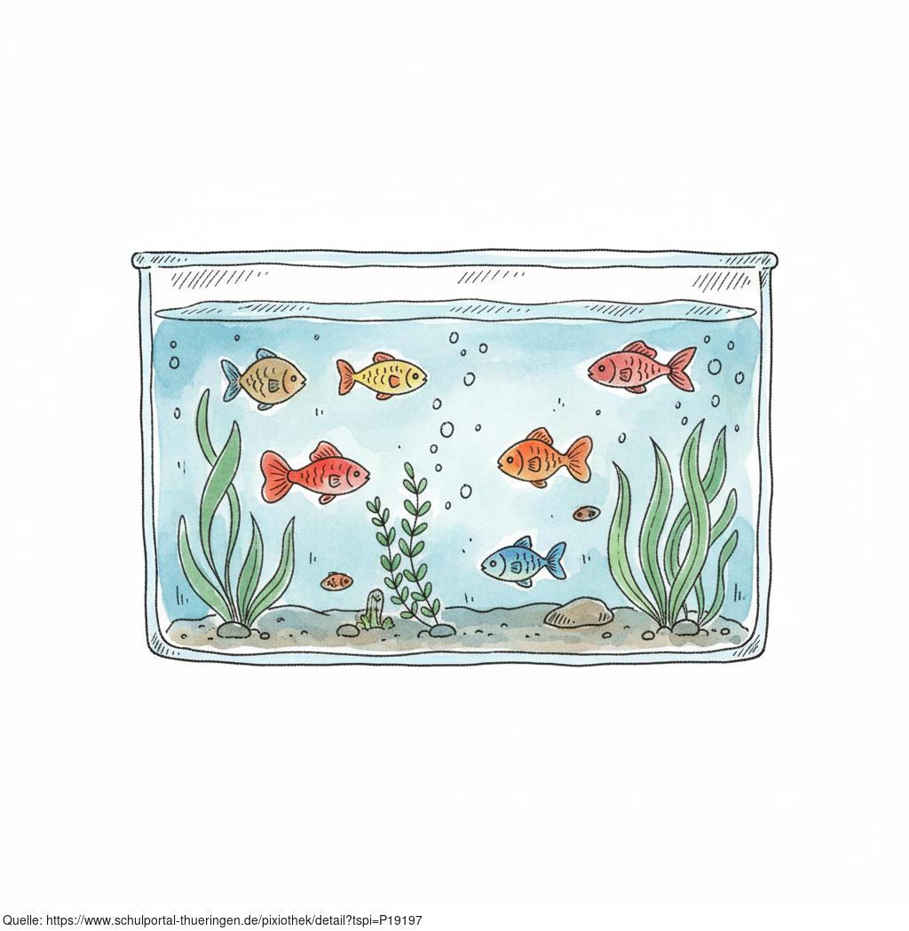Das Bild zeigt ein gezeichnetes Aquarium. Das Bild wurde mittels einer KI (Gemini) erstellt und ist unter CC0 lizenziert. Weitere Bilder aus Herrn Emrich-Försters Bild-Archiv findet man hier: https://pix.foerster.rocks/