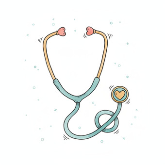 Das Bild zeigt ein gezeichnetes Stethoskop. Das Bild wurde mittels einer KI (Gemini) erstellt und ist unter CC0 lizenziert. Weitere Bilder aus Herrn Emrich-Försters Bild-Archiv findet man hier: https://pix.foerster.rocks/