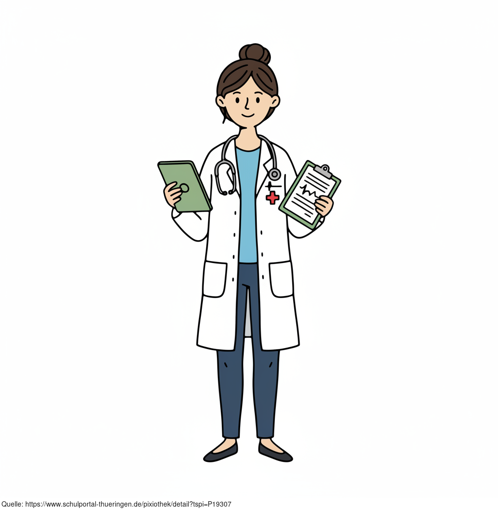 Das Bild zeigt einen gezeichneten Arzt mit Stethoskop. Das Bild wurde mittels einer KI (Gemini) erstellt und ist unter CC0 lizenziert. Weitere Bilder aus Herrn Emrich-Försters Bild-Archiv findet man hier: https://pix.foerster.rocks/