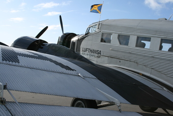 Das Foto gehört zu einer Serie mit Fotos der Junkers Ju 52 (Spitzname Tante Ju) mit dem Namen "Berlin-Tempelhof" auf dem Flughafengelände Lübeck. Das Flugzeug ist ein restauriertes Produkt der Junkers Flugzeugwerk AG Dessau aus dem Jahr 1936.