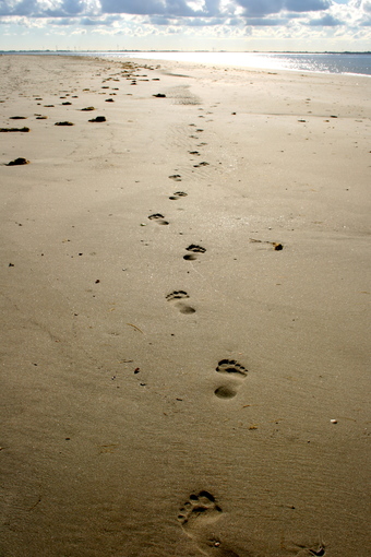 Abgebildet ist der Strand mit Fußabdrücken.