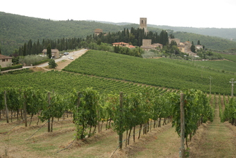 Das Foto gehört zur Serie "Toskana und Piemont". Es zeigt eine typische Landschaft der Toskana mit Weinanbau. Das Kloster Badia a Passignano liegt zwischen den Weinbergen des Chianti. Es gelten die Nutzungsbedingungen der Mediothek und Pixiothek.