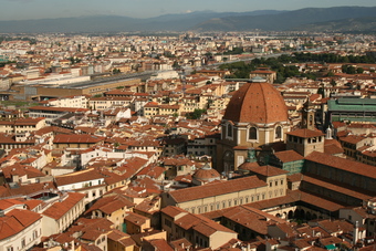 Das Foto gehört zur Serie "Florenz". Es zeigt eine Stadtansicht mit dem Bahnhof und der Kirche San Lorenzo. Es gelten die Nutzungsbedingungen der Mediothek und Pixiothek.