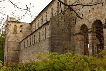 Das Foto gehört zur Serie "Klosterruine Paulinzella". Es zeigt die Ansicht von der Nordseite. - - Es gelten die Hinweis für Bilder mit Motiven von Stiftungsobjekten der Stiftung Thüringer Schlösser und Gärten: Es gilt grundsätzlich, dass die Bilder ausschließlich zur Bereitstellung für Unterrichtszwecke verwendet werden dürfen. Jede Art der darüber hinausgehenden Publikation der von einem Standort innerhalb der Stiftungs-Liegenschaften aufgenommenen Motive bedarf einer gesonderten schriftlichen Genehmigung durch die Stiftung Thüringer Schlösser und Gärten.