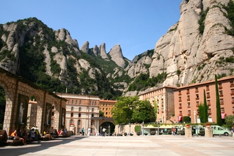 Die Bildersammlung enthält ausgewählte Fotografien vom Kloster Santa Maria de Montserrat, nordwestlich von Barcelona. Zu sehen ist der Platz vor dem Kloster.