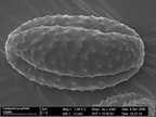Das Bild gehört zu einer Serie Pollen-Fotografien, die mit einem Rasterelektronenmikroskop aufgenommen wurden. Zu sehen sind Pollen von Catananche caerulea, der Blauen Rasselblume. Entstanden ist das Bild im Zuge der Ausbildung zum Biologielaboranten/ zur Biologielaborantin an der Uni Jena.