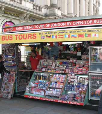 Das Foto gehört zur Serie London 2016. Es zeigt einen Souvenirstand am Piccadilly Circus neben der Coventry Street. Es gelten die Nutzungsbedingungen der Mediothek und Pixiothek.