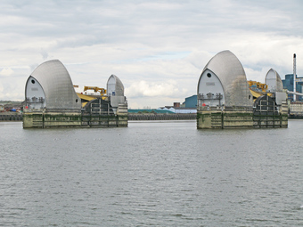 Das Foto gehört zur Serie London 2016. Es zeigt "The Thames Barrier", eines der größten Sturmflutsperrwerke der Welt. Es gelten die Nutzungsbedingungen der Mediothek und Pixiothek.