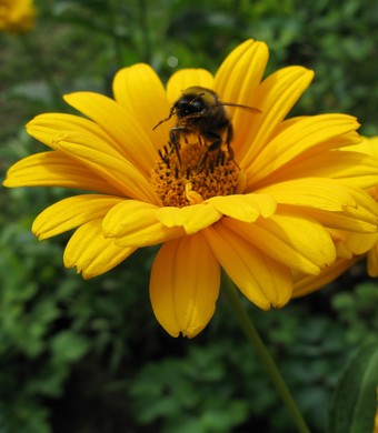 Das Foto gehört zur Serie Blumen im Garten. Es zeigt eine Ringelblume (Calendula). Sie ist einjährig und wächst am besten in Gruppen. Die Ringelblume ist nicht winterhart, wächst aber im Folgejahr durch ihren winterharten Samen von selbst wieder. Calendula officinalis war die Heilpflanze des Jahres 2009. Hier sucht eine Erdhummel nach Nektar. Es gelten die Nutzungsbedingungen der Mediothek und Pixiothek.