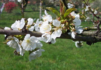 Das Foto gehört zur Serie Obstbäume. Es zeigt Kirschblüten der Süßkirsche. Es gelten die Nutzungsbedingungen der Mediothek und Pixiothek.