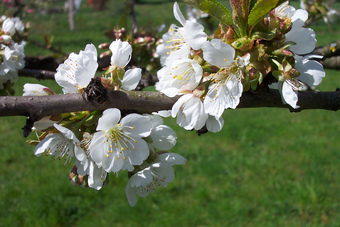 Das Foto gehört zur Serie Obstbäume. Es zeigt Kirschblüten der Süßkirsche. Es gelten die Nutzungsbedingungen der Mediothek und Pixiothek.