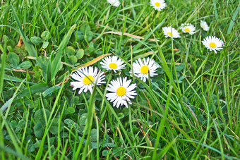 Das Foto gehört zur Serie Blumen im Garten. Es zeigt eine Wiese mit Gänseblümchen (Bellis perennsis) auch Tausendschön genannt. Es gelten die Nutzungsbedingungen der Mediothek und Pixiothek.