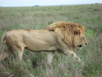 Ein männlicher Löwe in Tansania. Löwen gehören zur Ordnung Raubtiere (Carnivora), zur Überfamilie Katzenartige (Feloidea) und zur Familie Katzen (Felidae).