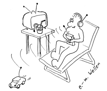 Das Foto gehört zur Serie "Paul". Es zeigt Paul, der ein Modellauto (durch elektromagnetischen Wellen) mit einer Fernbedienung steuert. Das Bild ist unter CC0 lizenziert und kann somit frei verwendet werden.