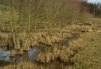 Das Foto gehört zur Serie "Wald". Es zeigt einen Bach. Biber haben Bäume gefällt. Das Bild ist unter CC0 lizenziert und kann somit frei verwendet werden.