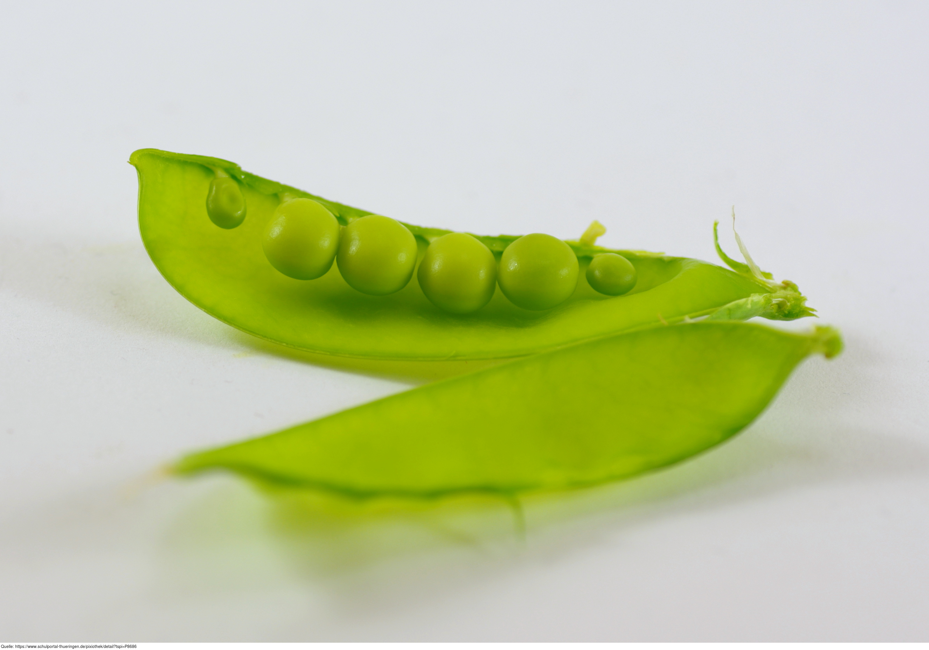 Das Bild gehört zur Serie "Gemüse". Es zeigt Erbsenblüten eine geöffnete Hülsenfrucht mit Samen der Erbse. Das Bild ist unter CC0 lizenziert und kann somit frei verwendet werden.