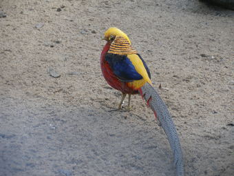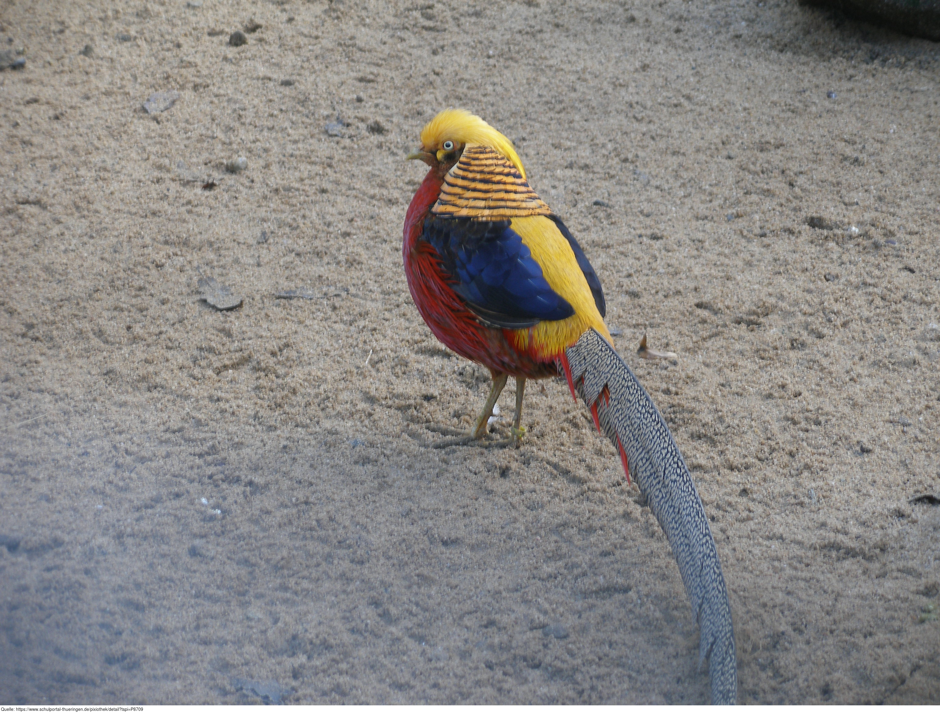 Das Foto zeigt einen Goldfasan. Der Goldfasan (Chrysolophus pictus) ist eine Hühnervogelart aus der Familie der Fasanenartigen. Das Bild ist unter CC0 lizenziert und kann somit frei verwendet werden.