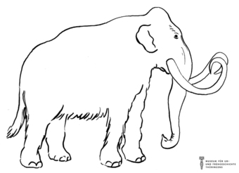 Das Bild gehört zur Serie "Zeichnungen Steinzeit - Museum für Ur- und Frühgeschichte Thüringens". Abgebildet ist ein Mammut. Es gelten die Nutzungsbedingungen der Mediothek und Pixiothek.