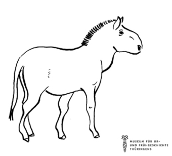 Das Bild gehört zur Serie "Zeichnungen Steinzeit - Museum für Ur- und Frühgeschichte Thüringens". Abgebildet ist das Ur-Pferd. Es gelten die Nutzungsbedingungen der Mediothek und Pixiothek.