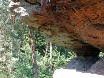 Das Bild gehört zur Serie "Gestein". Es zeigt einen Felsüberhang aus Sandstein. Das Bild ist unter CC0 lizenziert und kann somit frei verwendet werden.