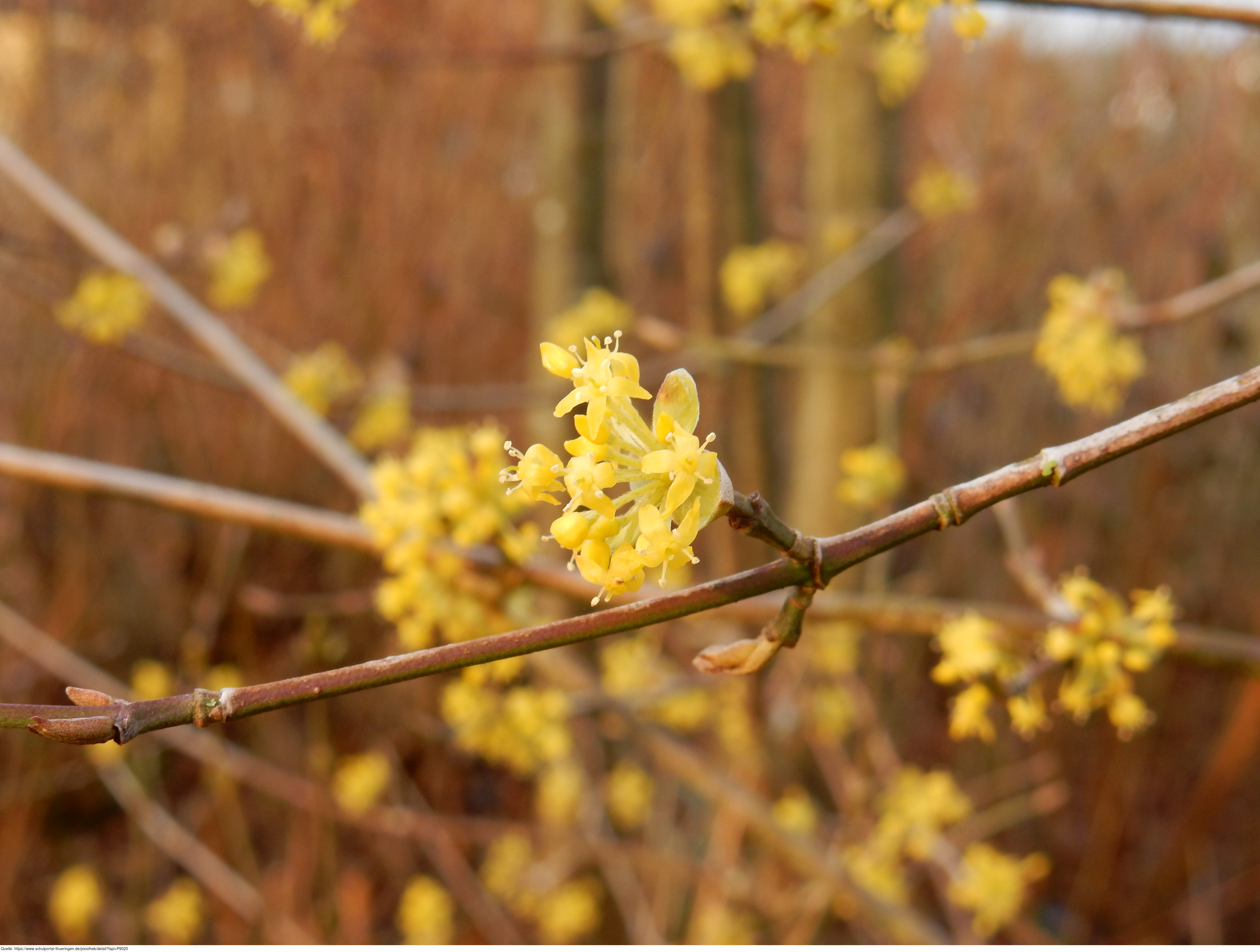 Das Foto gehört zur Serie "Laubbäume". Es zeigt eine blühende Kornelkirsche (Cornus mas), auch Herlitze, Dürlitze, Hirlnuss genannt. Das Bild ist unter CC0 lizenziert und kann somit frei verwendet werden.