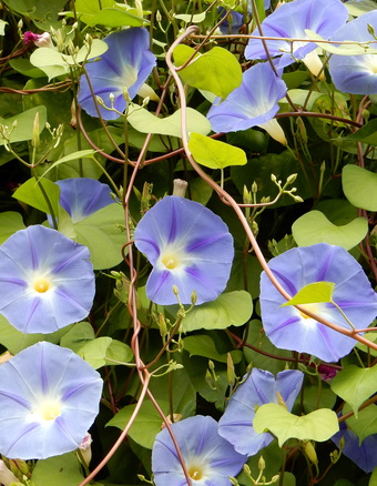 Das Foto gehört zur Serie "Blüten von Blumen". Es zeigt eine Blüte der Purpur-Prunkwinde (Ipomoea purpurea). Prunkwinden sind auch als Prachtwinden bekannt. Das Bild ist unter CC0 lizenziert und kann somit frei verwendet werden.