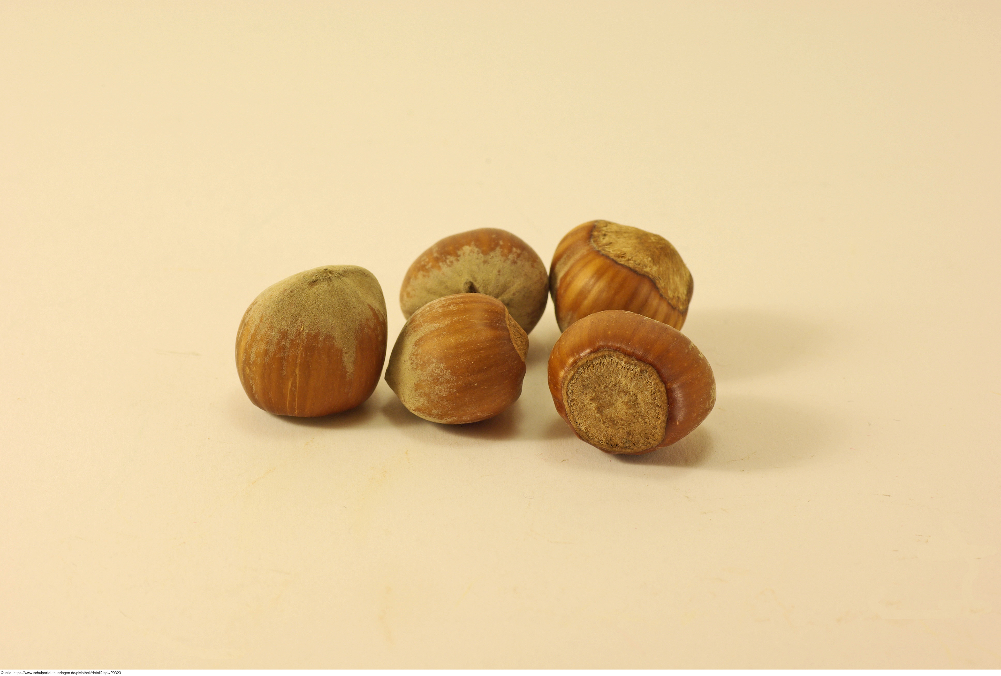 Das Foto gehört zur Serie "Nahrungsmittel". Es zeigt Nussfrüchte des Laubbaums Gemeine Hasel (Corylus avellana). Das Bild ist unter CC0 lizenziert und kann somit frei verwendet werden.