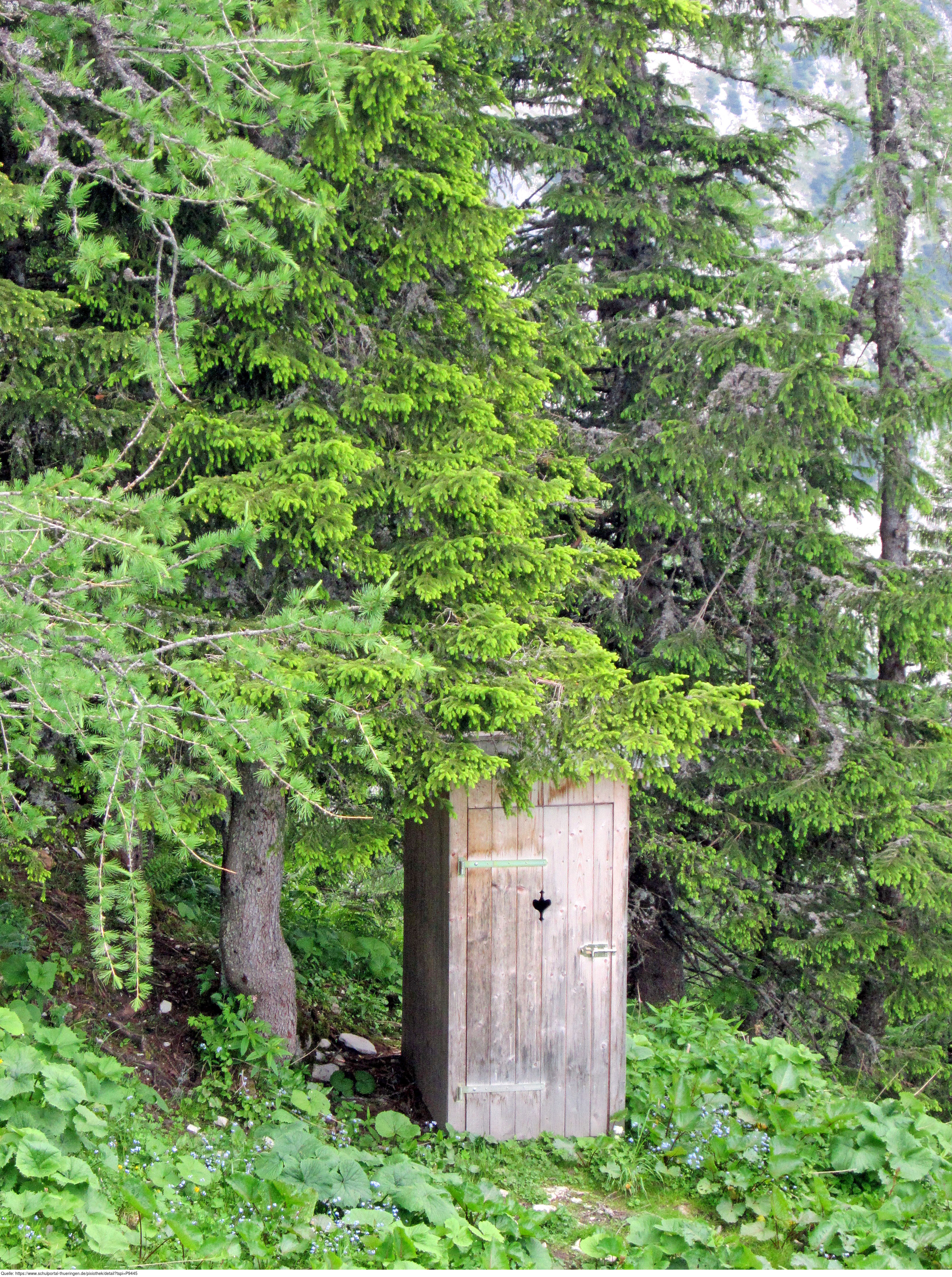 Das Foto zeigt eine Trockentoilette, umgangssprachlich als Plumpsklo bezeichnet. Das Bild ist unter CC0 lizenziert und kann somit frei verwendet werden.