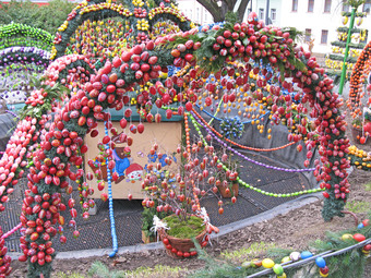 Das Foto gehört zur Serie "Ostern". Es zeigt die Osterkrone in Berga/Elster. 2015 bestand diese Dekoration aus über 15000 bemalten Eiern. Das Bild ist unter CC0 lizenziert und kann somit frei verwendet werden.