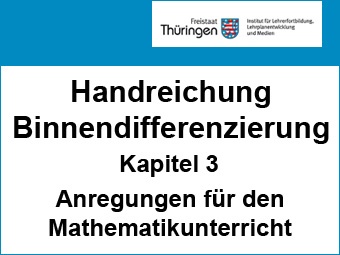 Die Handreichung enthält unterrichtspraktische Anregungen zur Binnendifferenzierung in den Fächern Deutsch, Mathematik und Englisch der Klassenstufen 5/6. In diesem Kapitel sind ausgewählte Themen des Fachlehrplans Mathematik exemplarisch für die gemeinsame Unterrichtung von Schülern mit unterschiedlichen Lernständen unter besonderer Berücksichtigung des Förderschwerpunktes Lernen aufbereitet. Für die Lernbereiche Arithmetik/Algebra, Funktionen, Geometrie und Stochastik wurden Materialien entwickelt oder bereits unter Federführung des ThILLM entwickelte Materialien erneut getestet. Alle Beispiele können als Varianten des Lernens am Gemeinsamen Gegenstand (Feuser, 2005) angesehen werden.